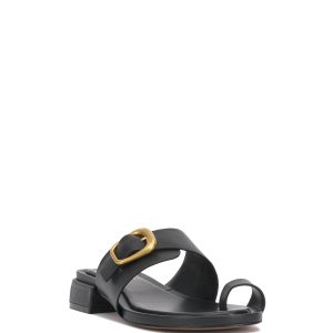 Slide into the Ranista sandal for a sleek and stylish finish to any warm weather look. The gold-toned buckle accent complements the trendy toe loop and low block heel for a tailored upgrade to your cut-offs or pleated skirts.